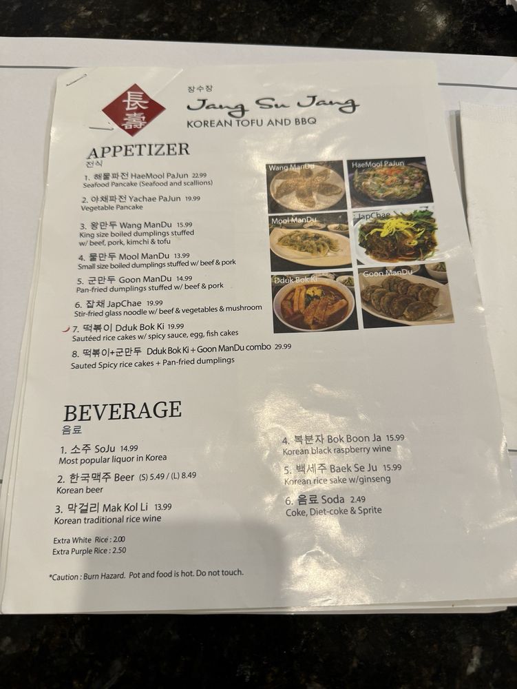 Located in Duluth, GA, Jang Su Jang is a Korean barbecue and seafood restaurant known for its authentic dishes and friendly service. Customers rave about the Bossam, a spiced pork belly dish, and the mixed soondubu with tender meat and seafood. The fried mandu is crispy and delicious, while the banchan is also highly praised. The traditional Korean atmosphere and cozy ambiance add to the overall dining experience. Customers appreciate the fast and friendly service even during busy times. The short rib stew is a standout dish, cooked to perfection with tender, succulent meat and flavorful veggies. Jang Su Jang is a must-visit for lovers of Korean cuisine looking for top-notch food and excellent service.
